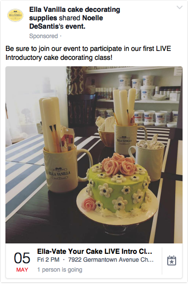 Ella Vanilla wants to use Social Media to increase sales and awareness. So, we developed a digital campaign revolving around a Facebook Live stream of an Ella Vanilla intro decorating class.